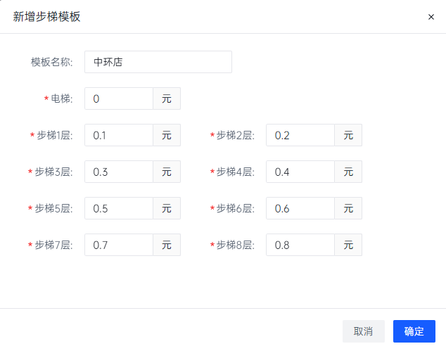 步梯模板是解决商户和客户之间提供额外的配送爬楼服务费用模块,在常规实际应用场景中,诸多客户存在无电梯,需要配送员步行爬楼配送的问题,为此该模板将解决爬楼收取额外配送中产生的爬楼配送服务费用问题,该模块将与商品模块下紧密衔接,并与配送设置下的配送员业绩核算有关联,请依实际业务情况合理设置相应的爬楼服务费用。